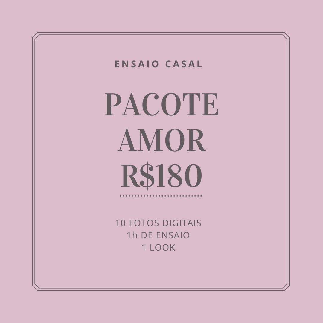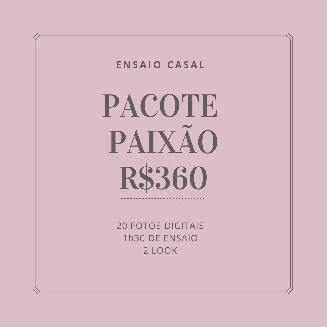 O Ensaio Fotográfico vai além de uma forma de recordação, ele permite que você tenha uma experiência única de descobrir ou redescobrir o que há de mais bonito em você através do olhar de um fotógrafo. E todo casal merece ter seus clicks eternizados. Esse ensaio pode ser feito apenas em casal, se for em mais pessoas ver nossas outras opções de pacotes de ensaio.